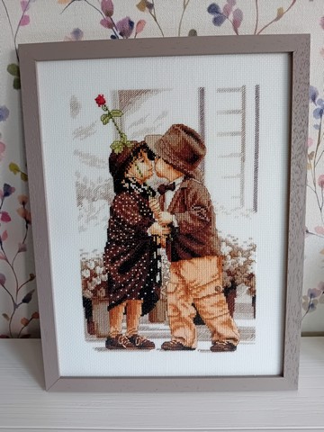 Vorig jaar zag ik op Instagram allerlei mensen borduren. Toen begon het bij mij ook te kriebelen. Ik had al járen (ik gok ook al sinds 2006) een ABC liggen dat ik graag wilde maken. Maar dan moest ik van mezelf eerst dat leuke schilderijtje van dat kussende paartje afmaken. En je raadt het al: daar had ik geen zin in, want stiksteken.