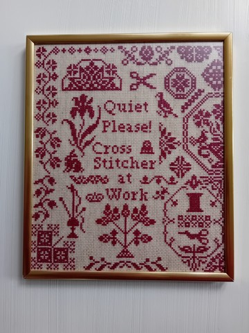 *Patroon: Cross Stitcher At Work Mini Quaker Sampler Cross Stitch Pattern. Hier gekocht op Etsy.