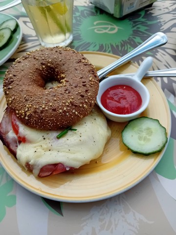 Eenmaal aangekomen in Rotterdam was het lunchtijd. Wij liepen vanaf Rotterdam Centraal naar Donner en kwamen onderweg genoeg eetgelegenheden tegen. We besloten te lunchen bij Bagels & Beans. En eh, dat was nogal een ervaring. Ik wilde het wachten al lang opgeven en naar de AH to go ernaast gaan, maar mijn zusje had meer geduld. Uiteindelijk, na minstens een kwartier wachten, bestelden we drinken en jawel, 20 minuten na de bestelling werd het ook geleverd. Op de bagel moesten we nóg langer wachten. Maar goed, het was vakantie en ik vergaapte me ondertussen aan alle stedelingen. En ik geef toe: de bagel was wél lekker.