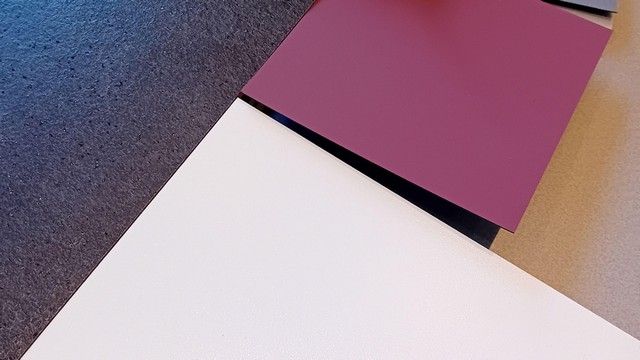 Nadat ik ’s morgens mijn nieuwe keuken had uitgezocht, ging ik ’s middags naar een bedrijf waar ze vloeren hebben én waar ze ook trappen kunnen bekleden. Ik had eerlijk gezegd geen idee wat ik wilde, maar binnen een uur waren alle keuzes gemaakt. Beneden komt er laminaat, op de eerste verdieping en op zolder komt er vinyl en op de trappen en de overloop komt er -tot mijn eigen verbazing- tapijt. Ik wilde eigenlijk geen tapijt, maar mijn trap naar zolder is een open trap. Daar ligt nu tapijt op. Als ik daar laminaat op wil, moet ik de onderkant van de treden verven. Dat zag ik niet zo zitten: “Daar kan ik niet bij en daar zit dan lijm op van het oude tapijt. Dus dan gaan we toch maar weer voor tapijt.” De verkoopster en de aanwezige stagiaire hadden inmiddels wel door dat ik van kleur houd. En dan met name van rood. Dus zei ik erbij: “Ik denk dat we dan maar voor donkerrood moeten gaan.” Dat leek de verkoopster een heel goed idee. En zo geschiedde. Zie hier van links naar rechts: de vloer beneden (die nu ‘heftiger’ lijkt dan hij in het echt was), de vloer boven en het tapijt. Helemaal mijn smaak en helemaal zin in!